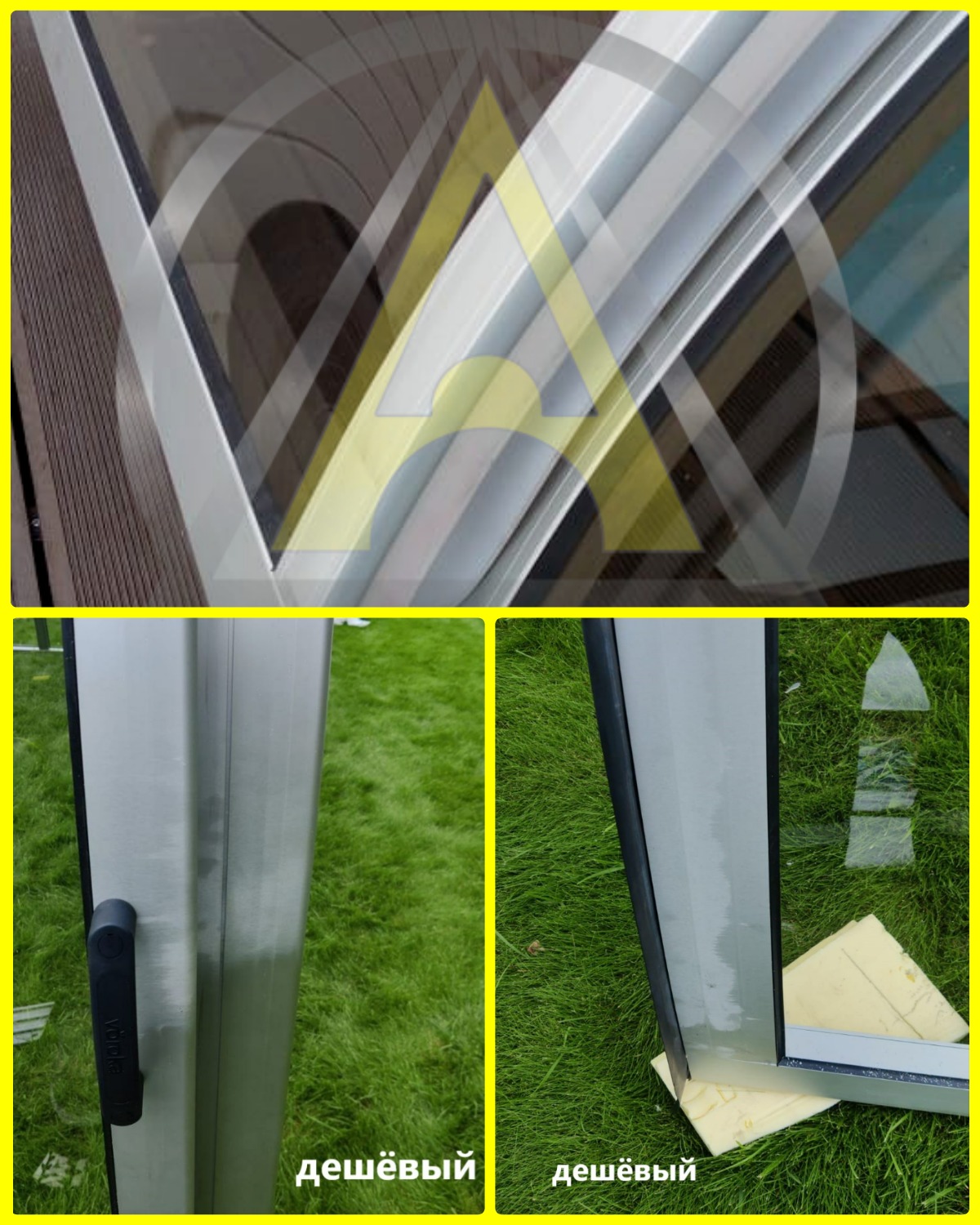 Будьте аккуратны! Снижение веса профиля вовсе не означает, что с внешнего вида профиль станет меньшего размера. Уменьшается толщина внутренних перегородок, а для сохранения презентабельного внешнего вида ширина профилей может даже быть увеличена до 70мм и даже 90мм. Например, существуют производители, у которых цена павильона для бассейна очень привлекательная, и чтобы скрыть тонкие стенки профиля они привозят павильон для бассейна собранным с заглушками по краям профилей и только профессионал сможет определить, например по весу секций павильона, тонкий это профиль или достаточно крепкий.