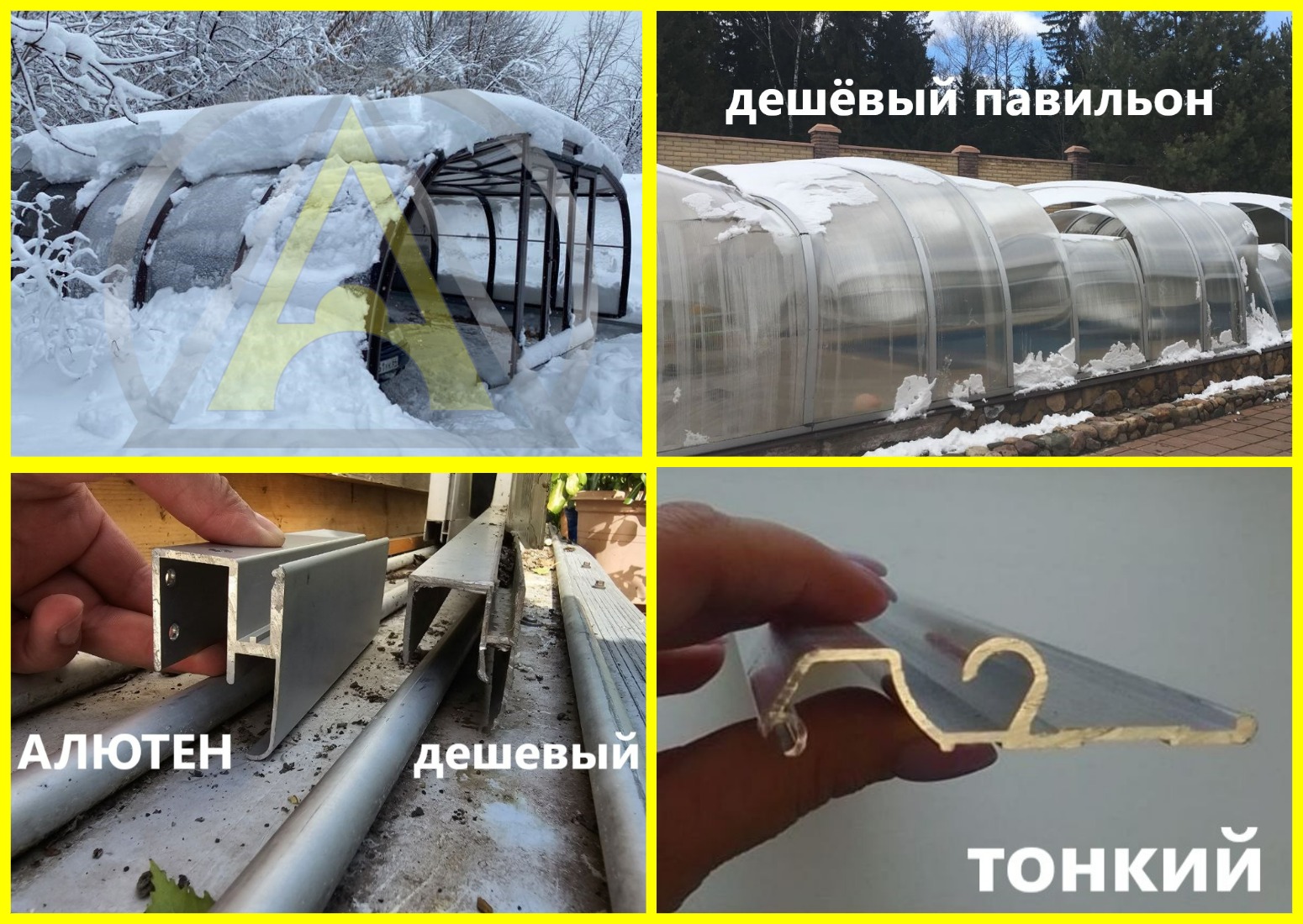Завод АЛЮТЕН разработал собственную профильную систему ALUTEN, которая имеет толщину стенок несущего профиля 5мм(!), поэтому в Самаре павильоны для бассейнов АЛЮТЕН не нужно чистить зимой!